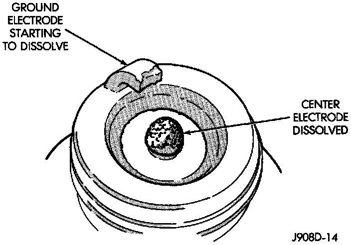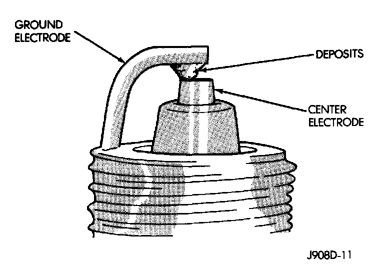 Electrode gap bridging may be traced to loose deposits in the combustion chamber. These deposits accumulate on the spark plugs during continuous stop-and-go driving. When the engine is suddenly subjected to a high torque load, deposits partially liquefy and bridge the gap between electrodes. This short circuits the electrodes. Spark plugs with electrode gap bridging can be cleaned using standard procedures.