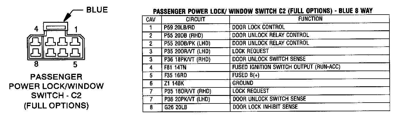 Passenger [1][2]Power Lock/Window Switch - C2 (Full options) - Blue 8 Way