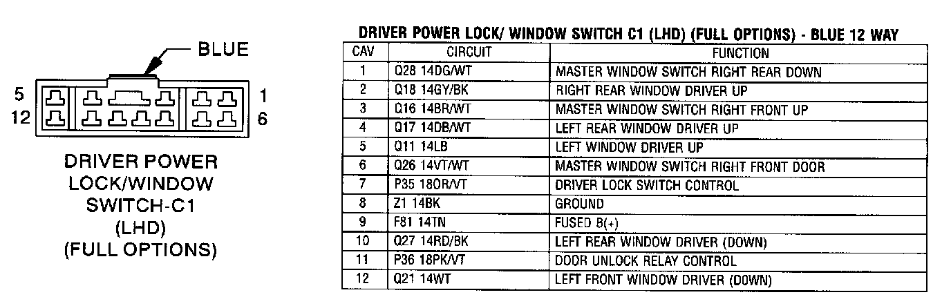 Driver Power Lock/Window Switch - C1 (RHD) (Full options) - Blue 12 Way