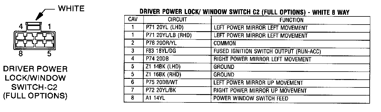 Driver Power Lock/Window Switch - C2 (Full options):