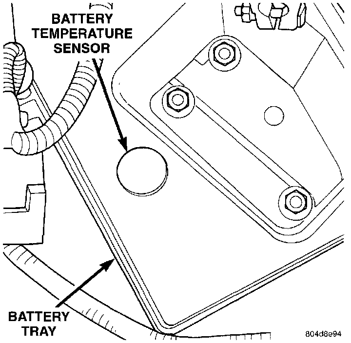 1. The sensor is located under the battery and is attached to the battery tray. A two-wire pigtail harness is attached directly to the sensor. The opposite end of this harness connects the sensor to the engine wiring harness.