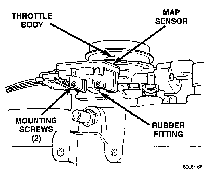 The MAP sensor is mounted to the side of the throttle body. An L-shaped rubber fitting is used to connect the MAP sensor to throttle body.