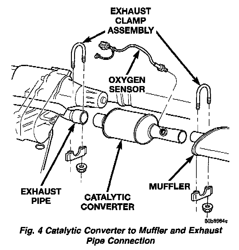 (2) Remove the clamps from the catalytic converter and muffler connection (Fig. 4).