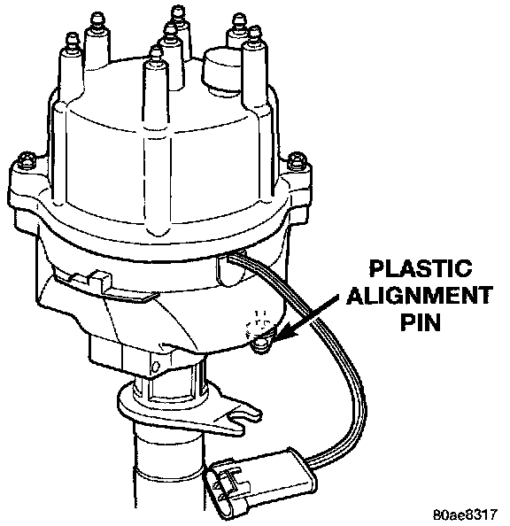 All distributors contain an internal oil seal that prevents oil from entering the distributor housing. The seal is not serviceable.Plastic Alignment Pin:
