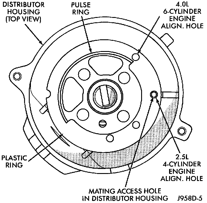 6. Four different alignment holes are provided on plastic ring. Note that 2.5L and 4.0L engines have different alignment holes.