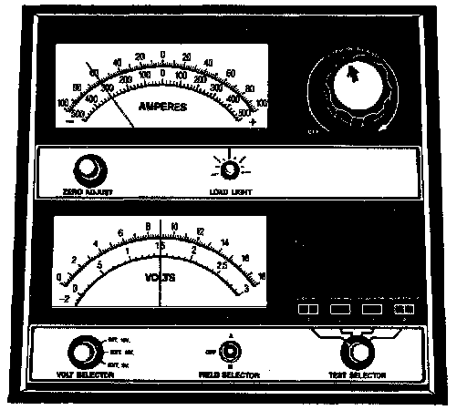 3. Rotate the load control knob (carbon pile rheostat) to apply a 300 ampere load to the battery for fifteen seconds, then return the control knob to the Off position. This will remove the surface charge from the battery.