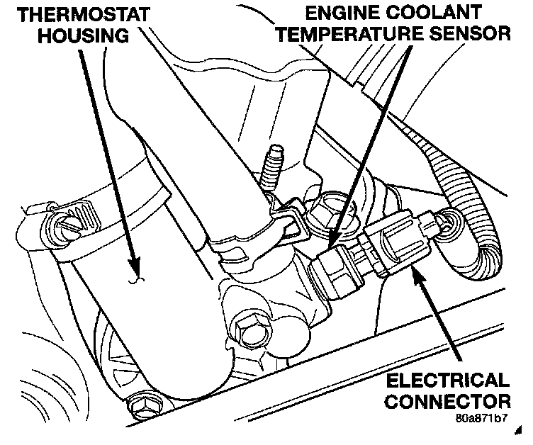 To perform a complete test of the engine coolant temperature sensor and its circuitry, refer to DRB scan tool and appropriate Powertrain Diagnostics Procedures, To test the sensor only, refer to the following:Engine Coolant Temperature Sensor - Typical: