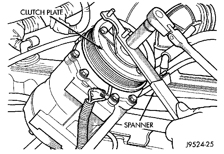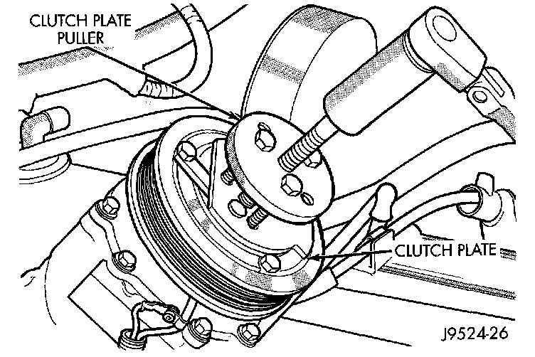 The refrigerant system can remain fully-charged during compressor clutch, pulley, or coil replacement. The compressor clutch can be serviced in the vehicle.REMOVAL
