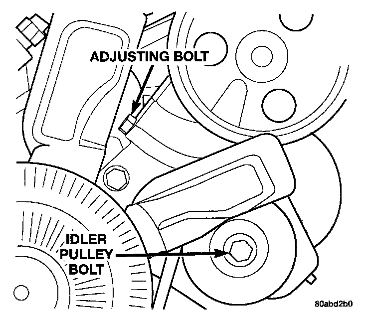 (3) Tighten idler pulley bolt and re-check belt tension. Adjust if necessary.