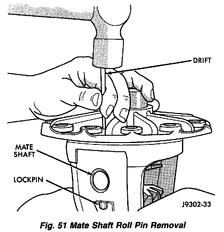 2. Using a suitable roll pin punch, drive out the roll pin holding pinion gear mate shaft in the differential case.