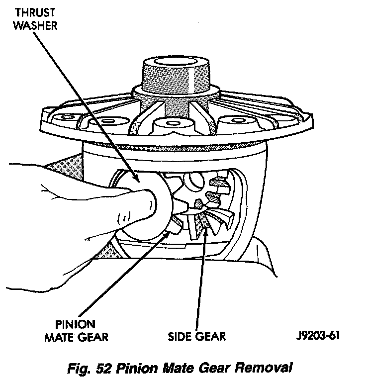 4. Rotate differential side gears and remove the pinion mate gears and thrust washers.