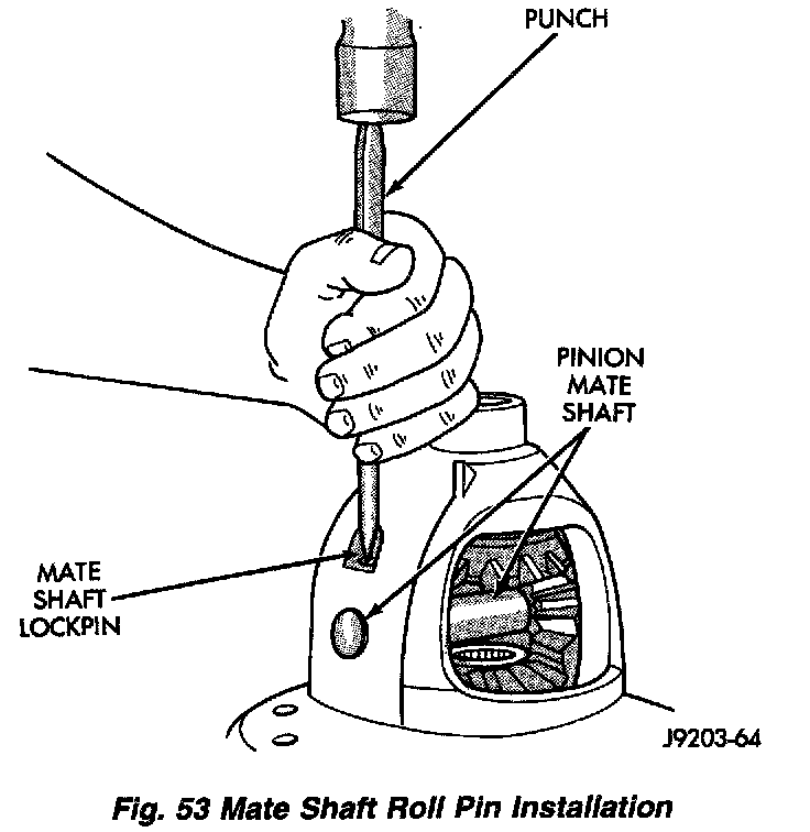 3. Install the pinion gear mate shaft. Align the roll pin holes in shaft and the differential case.