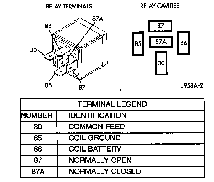2. The relay normally closed terminal (87) is connected to terminal 30 in the de-energized position, but is not used for this application. Go to Step 3.