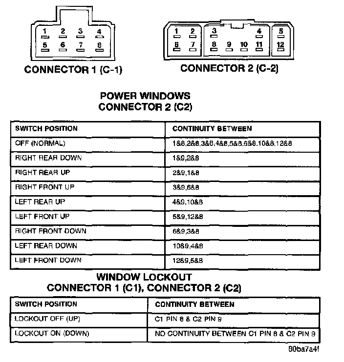 DDM Power Window Switch Continuity: