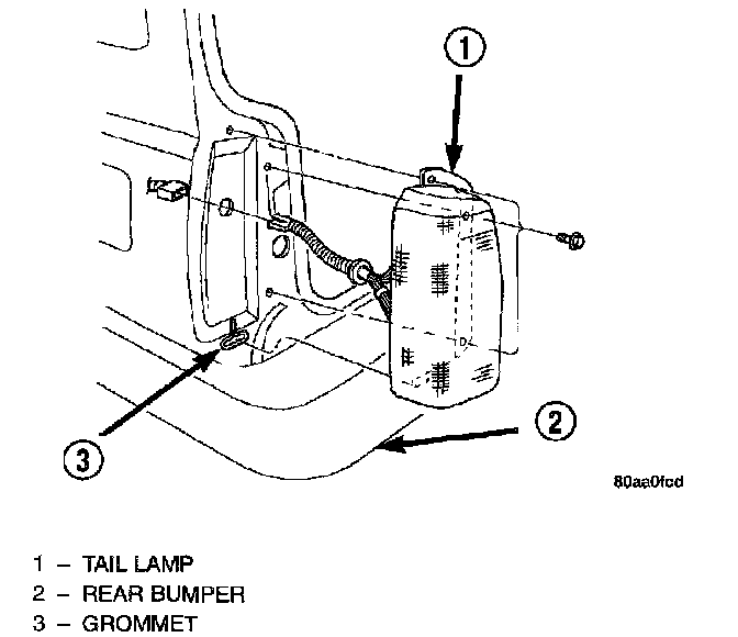 4. Install the bolts attaching the tail lamp housing to the quarter panel.