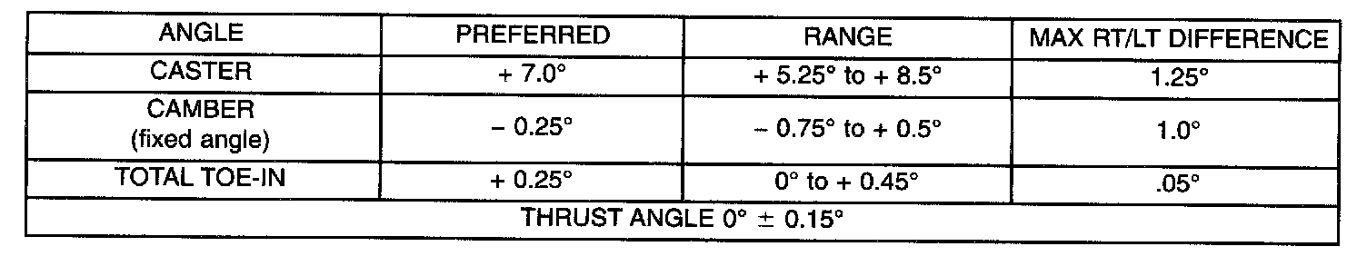 Wheel Alignment Specifications Chart