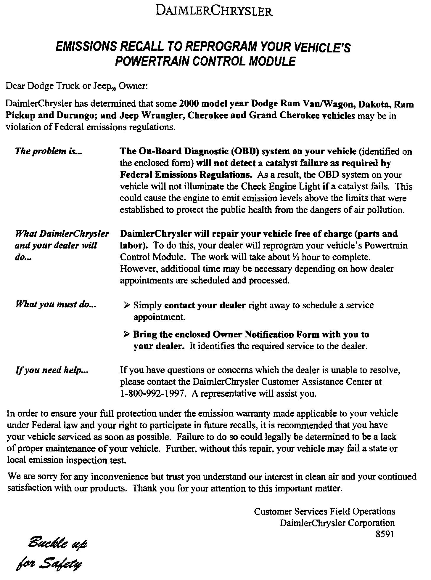 Recall - Reprogram PCM/Unable to Detect Catalyst Fault