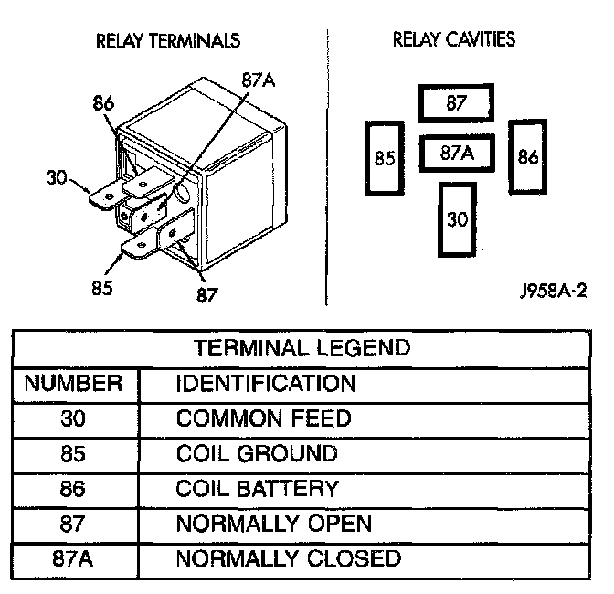 2. The relay normally closed terminal (87A) is connected to terminal 30 in the de-energized position, hut is not used for this application. Go to Step 3.