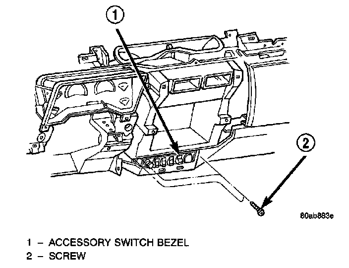 3. Remove the three screws that secure the accessory switch bezel to the instrument panel.