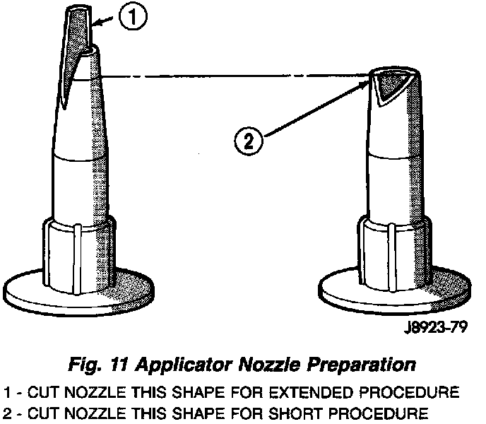 12. Cut the urethane adhesive applicator nozzle (Fig. 11).