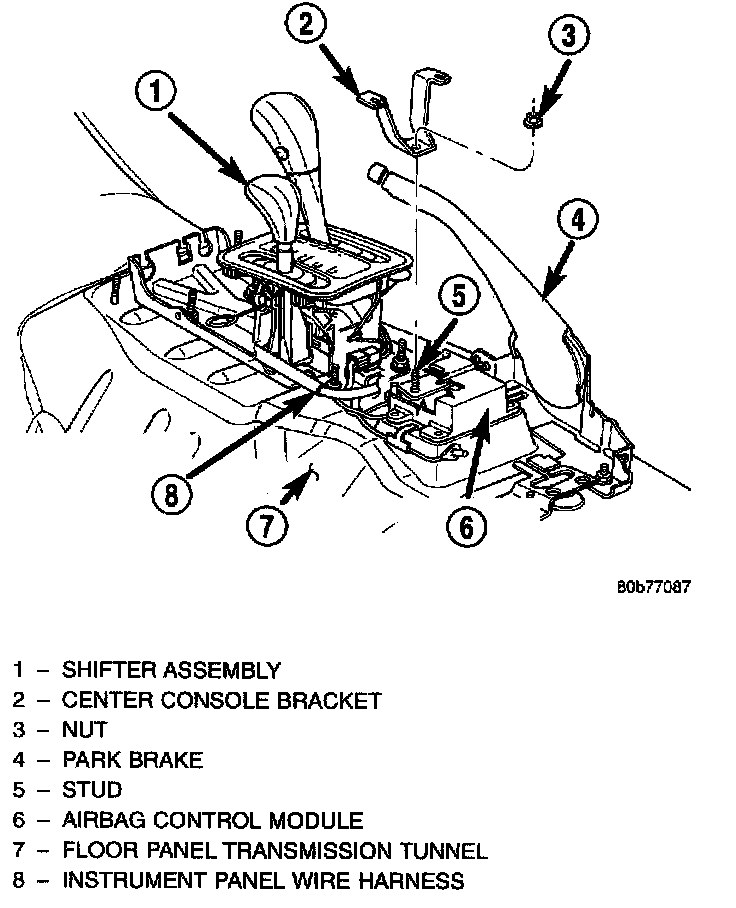 2. Remove the center floor console from the floor panel transmission tunnel.