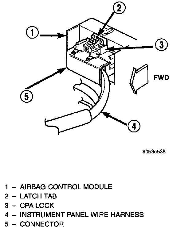 WARNING:- THE AIRBAG CONTROL MODULE CONTAINS THE IMPACT SENSOR, WHICH ENABLES THE SYSTEM TO DEPLOY THE AIRBAG. BEFORE ATTEMPTING TO DIAGNOSE OR SERVICE ANY AIRBAG SYSTEM OR RELATED STEERING WHEEL, STEERING COLUMN, OR INSTRUMENT PANEL COMPONENTS YOU MUST FIRST DISCONNECT AND ISOLATE THE BATTERY NEGATIVE (GROUND) CABLE. THEN WAIT TWO MINUTES FOR THE SYSTEM CAPACITOR TO DISCHARGE BEFORE FURTHER SYSTEM SERVICE. THIS IS THE ONLY SURE WAY TO DISABLE THE AIRBAG SYSTEM. FAILURE TO DO THIS COULD RESULT IN ACCIDENTAL AIRBAG DEPLOYMENT AND POSSIBLE PERSONAL INJURY.