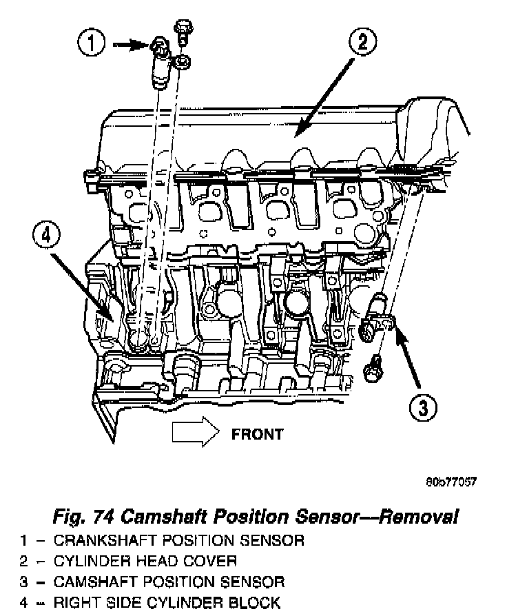 12. Remove camshaft position sensor from right cylinder head (Fig. 74).