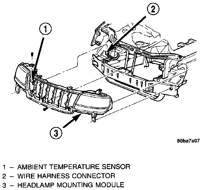 6. Remove the ambient temperature sensor from the headlamp mounting module.