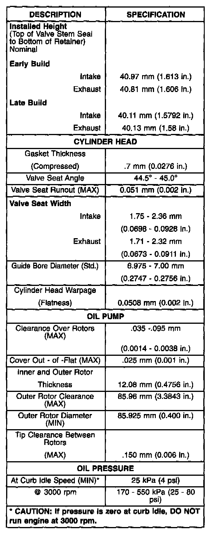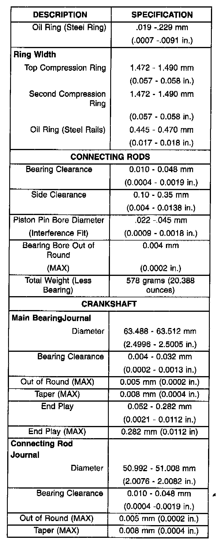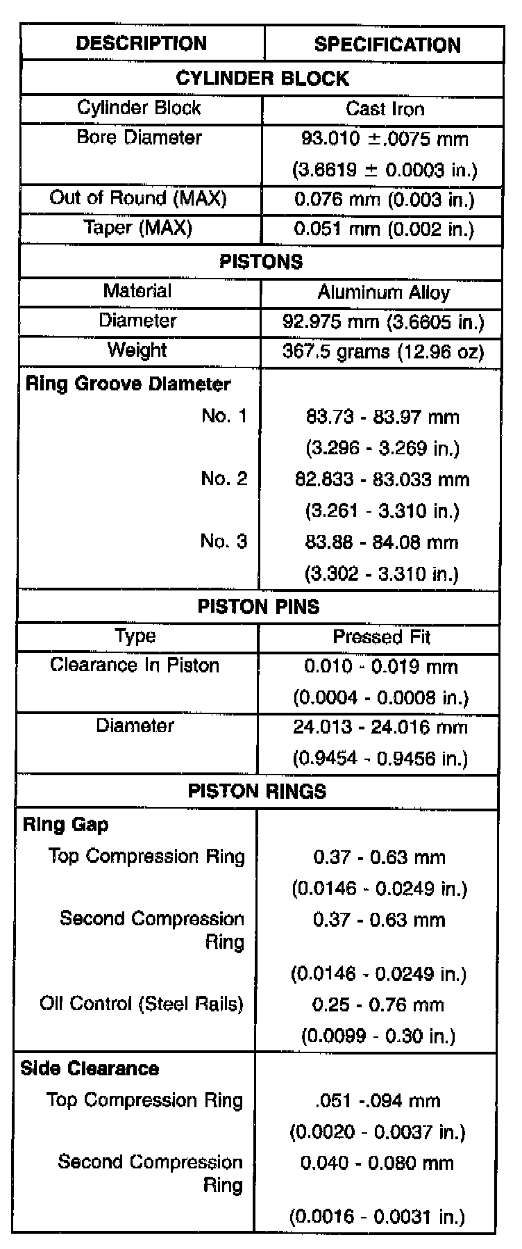 Engine Specifications