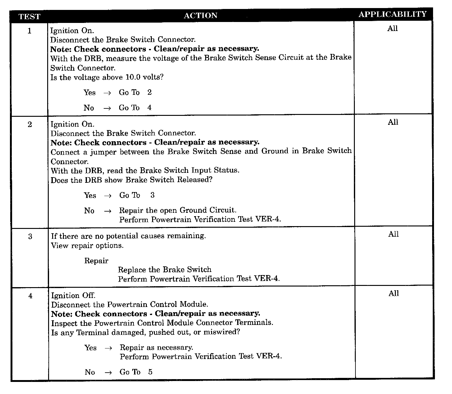 Checking Brake Switch Sense