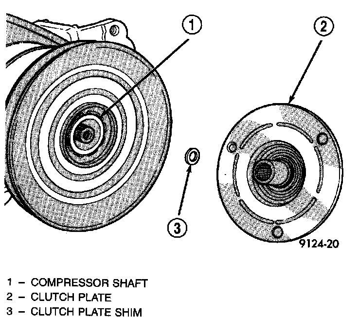 4. Tap tile clutch plate with a plastic mallet to release it from the splines on the compressor shaft. Remove the clutch plate and shim(s) from the compressor shaft.