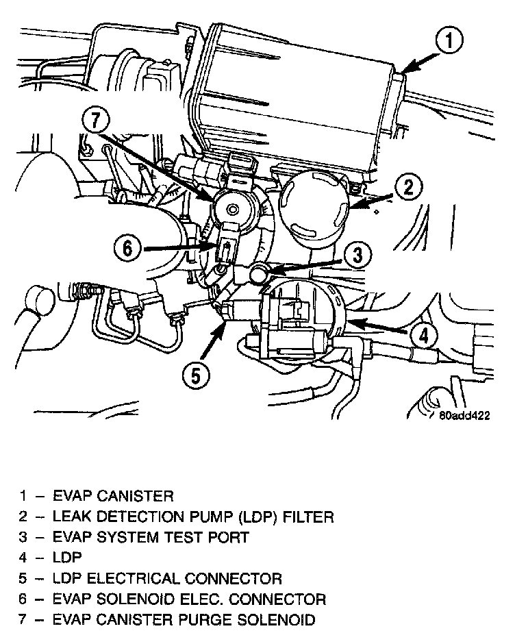 The LDP is located in the engine compartment near the EVAP canister. The LDP filter is also located near the EVAP canister. The LDP and LDP filter are replaced (serviced) as one unit.