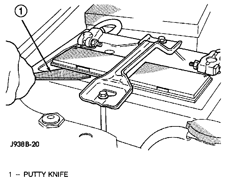 2. Clean the battery tray and battery hold down hardware of all corrosion. Remove any corrosion using a wire brush and a sodium bicarbonate (baking soda) and warm water cleaning solution. Paint any exposed bare metal.
