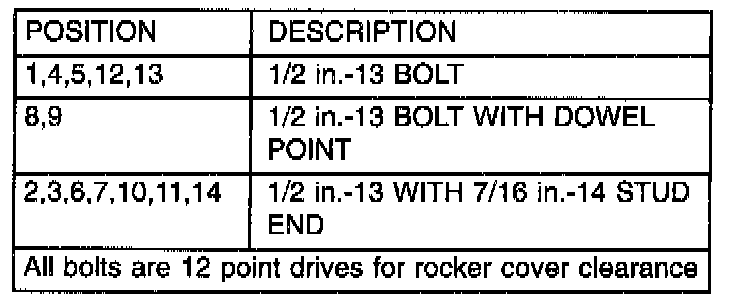 - All bolts are 12 point drives for rocker cover clearance