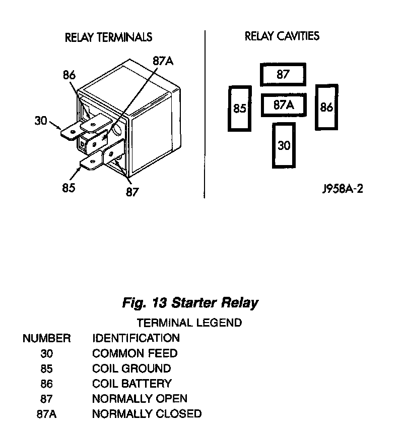 2. The relay normally closed terminal (87A) is connected to terminal 30 in the de-energized position, but is not used for this application. Go to Step 3.