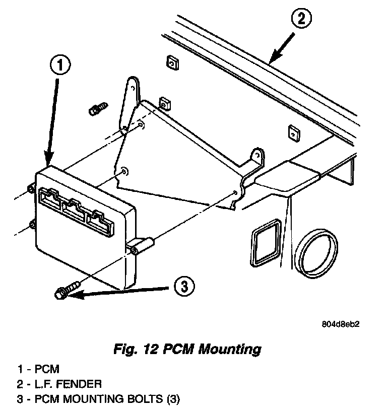 4. Remove three PCM mounting bolts and remove PCM from vehicle.
