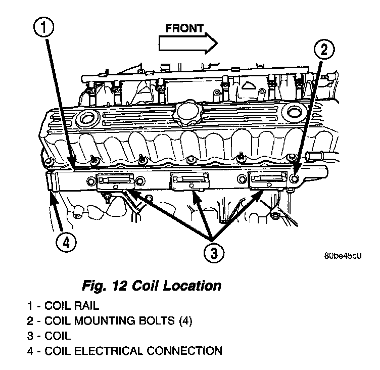 1. The coil is bolted directly to the cylinder head. One electrical connector (located at rear of coil) is used for all three coils,