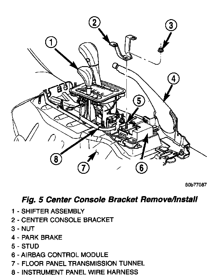 2. Remove the center floor console from the floor panel transmission tunnel.