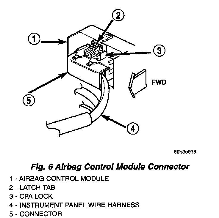 - THE AIRBAG CONTROL MODULE CONTAINS THE IMPACT SENSOR, WHICH ENABLES THE SYSTEM TO DEPLOY THE AIRBAGS. NEVER STRIKE OR KICK THE AIRBAG CONTROL MODULE, AS IT CAN DAMAGE THE IMPACT SENSOR OR EFFECT ITS CALIBRATION. IF AN AIRBAG CONTROL MODULE IS ACCIDENTALLY DROPPED DURING SERVICE, THE MODULE MUST BE SCRAPPED AND REPLACED WITH A NEW UNIT. FAILURE TO OBSERVE THIS WARNING COULD RESULT IN ACCIDENTAL, INCOMPLETE, OR IMPROPER AIRBAG DEPLOYMENT AND POSSIBLE OCCUPANT INJURIES.