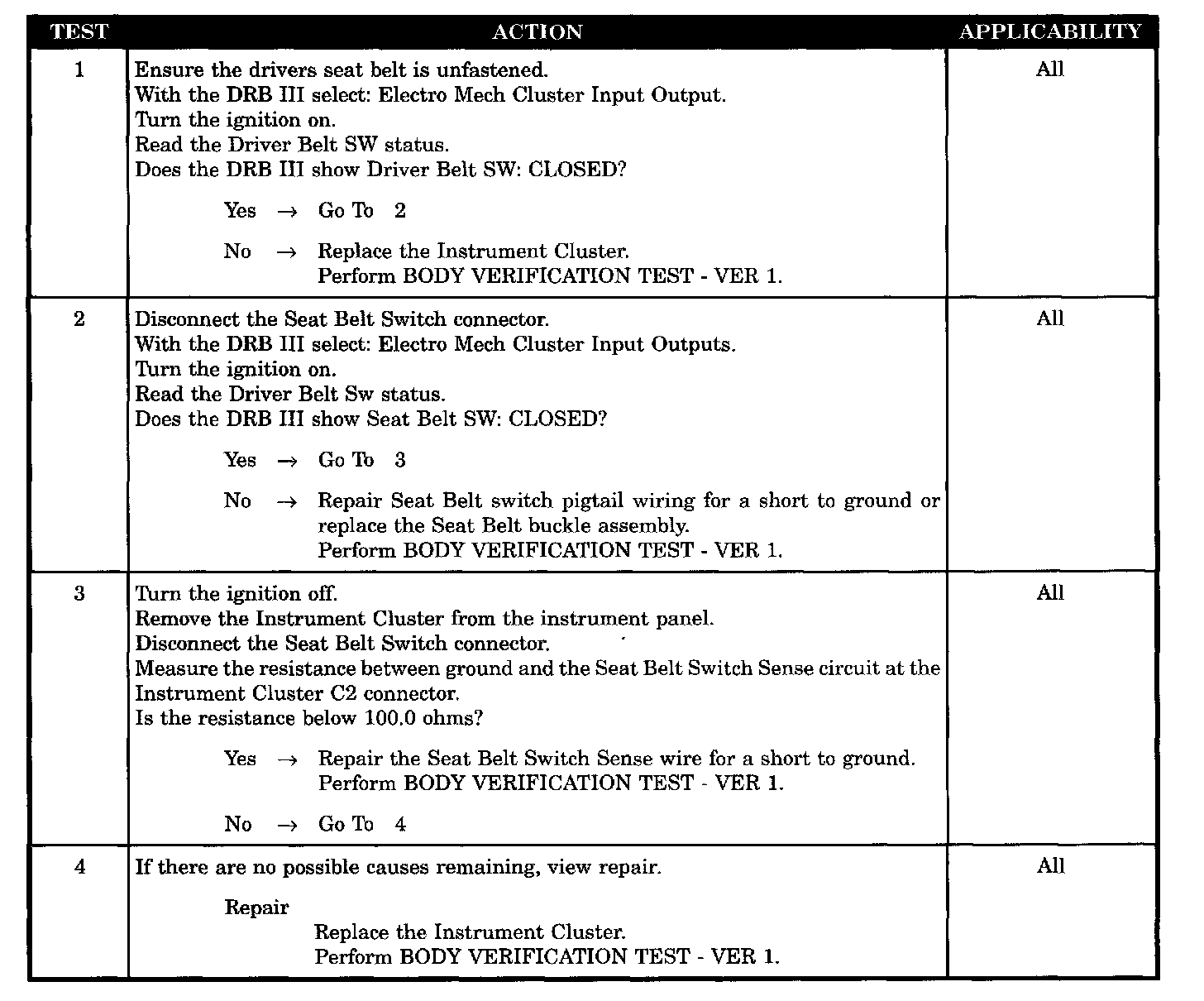 - Instrument cluster - seat belt switch shorted