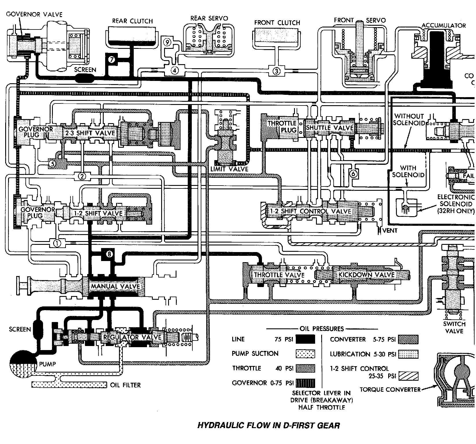 Hydraulic Flow in D-Third Gear (Converter Clutch Applied)