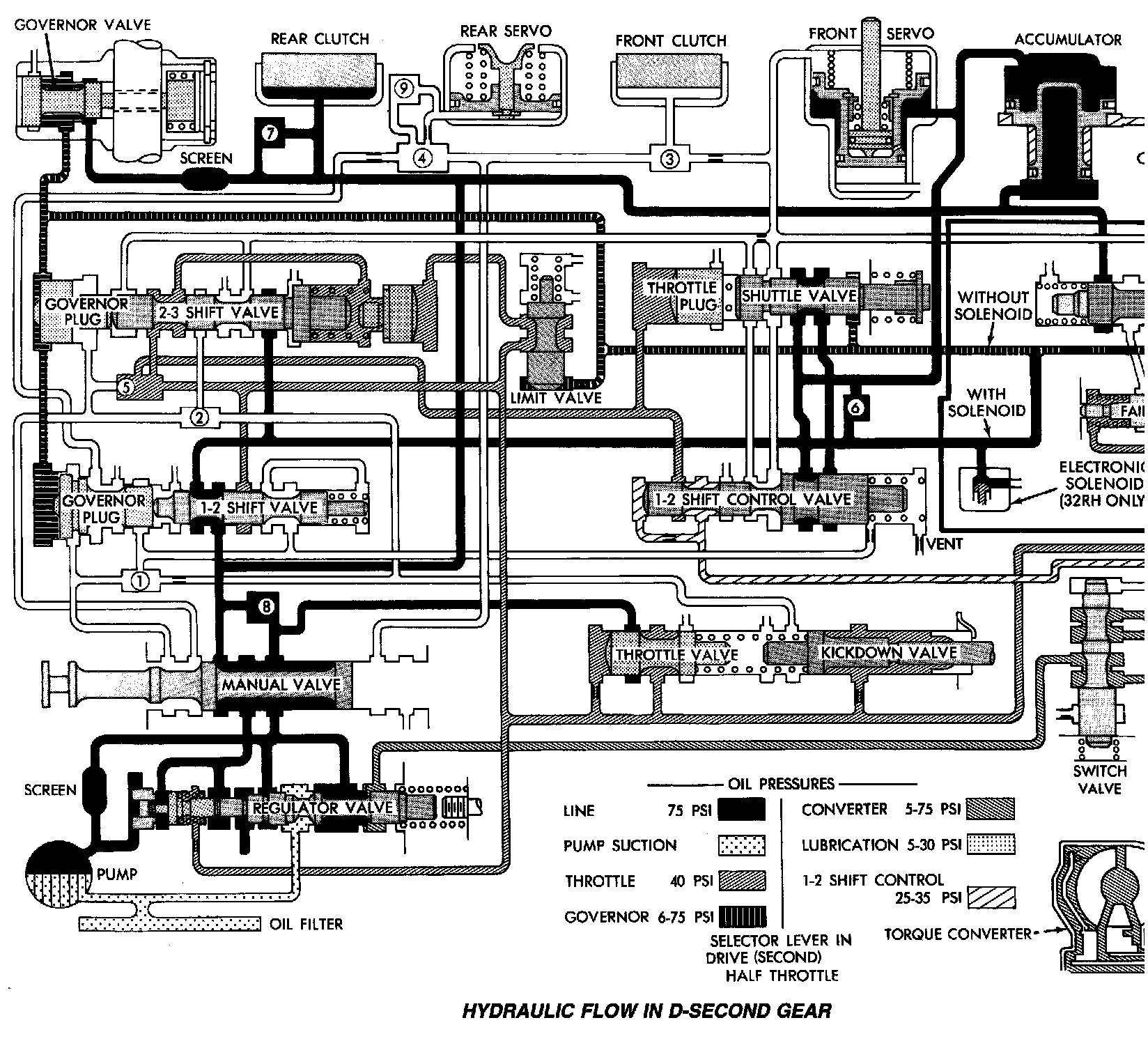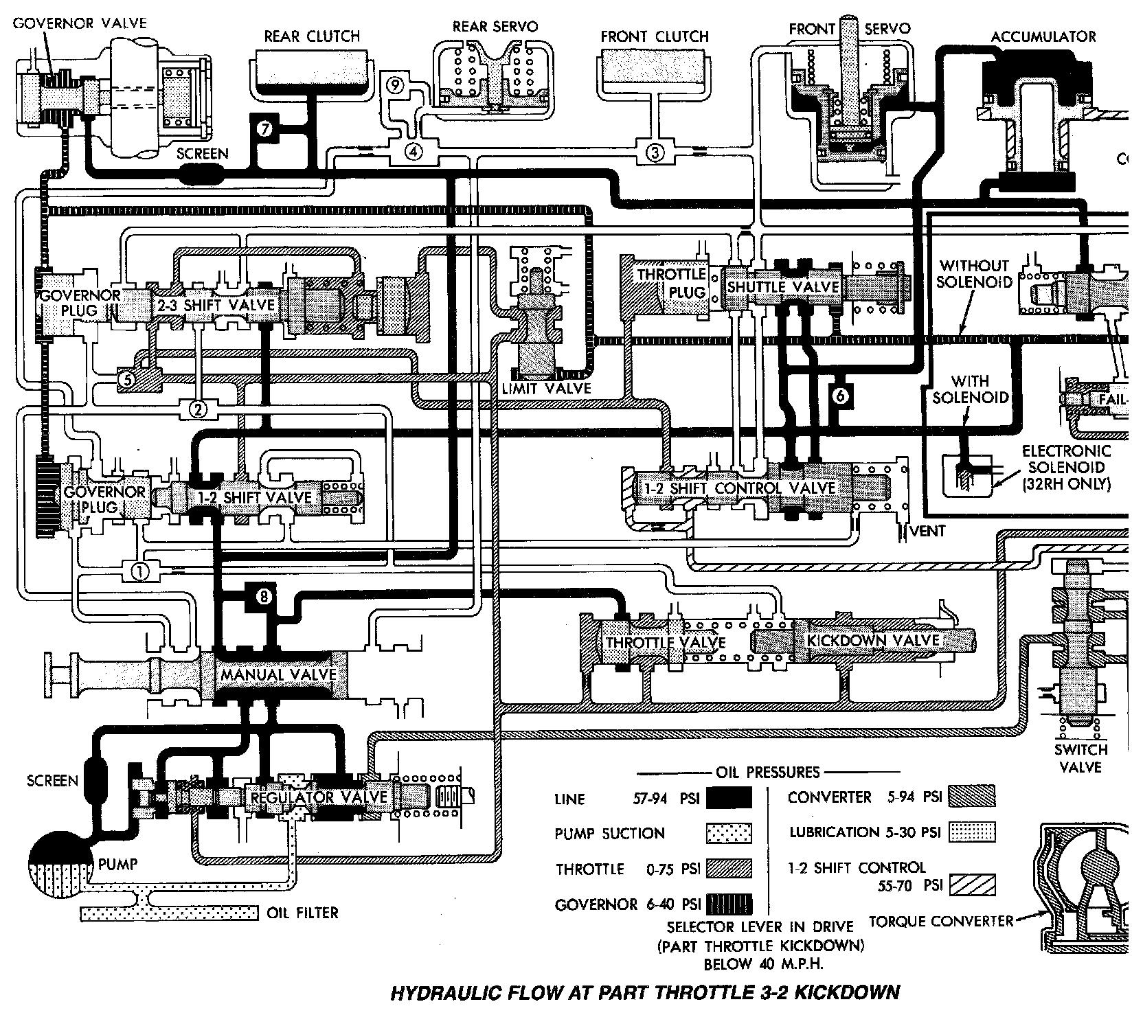Hydraulic Flow at Part Throttle 3-2 Kickdown