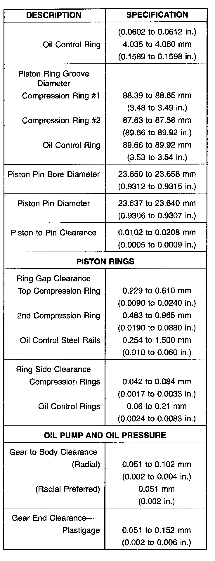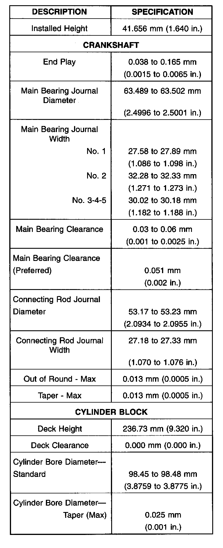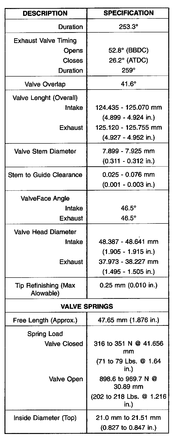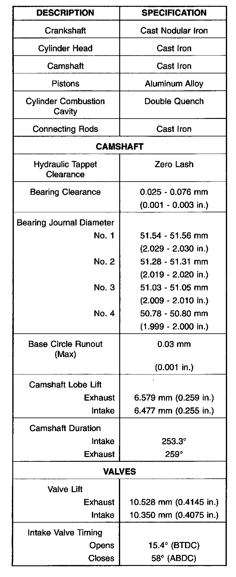 Engine Specifications