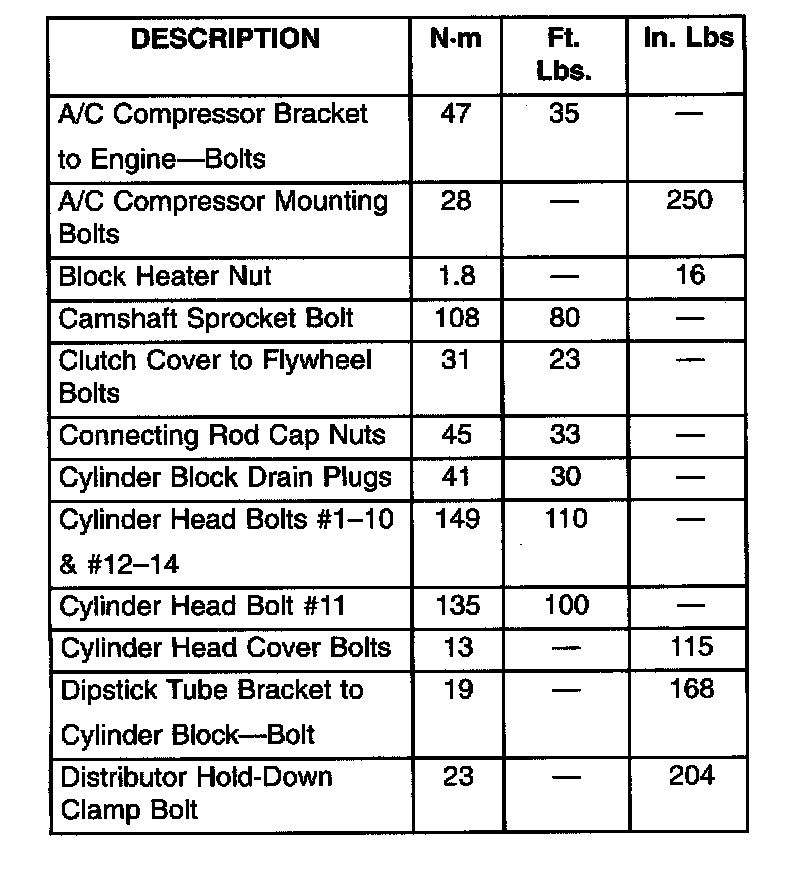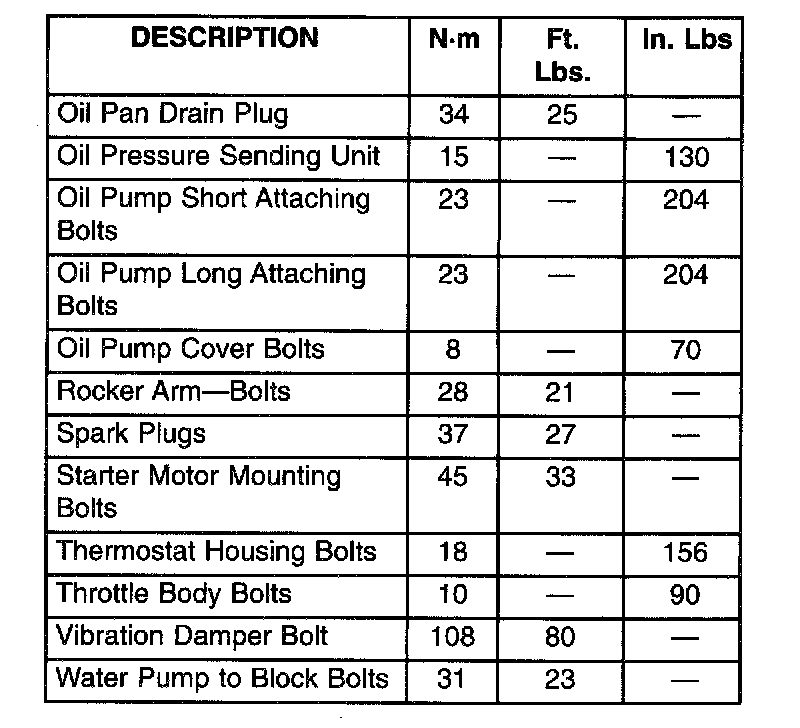 Torque Specifications