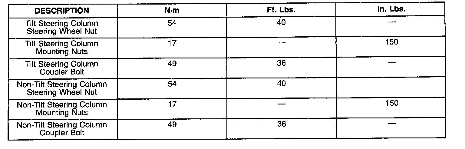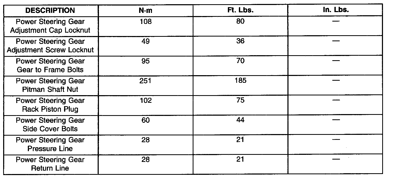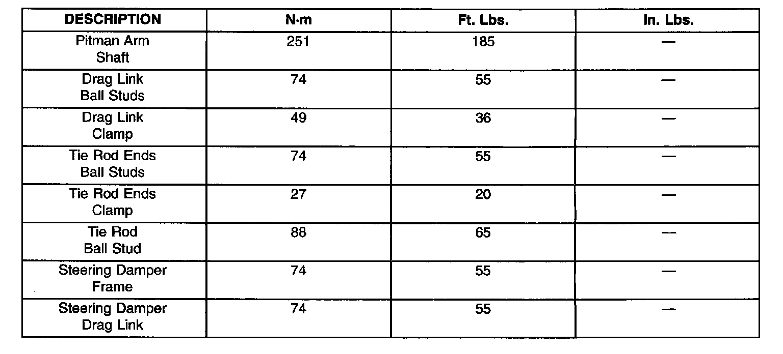 TORQUE SPECIFICATIONS
