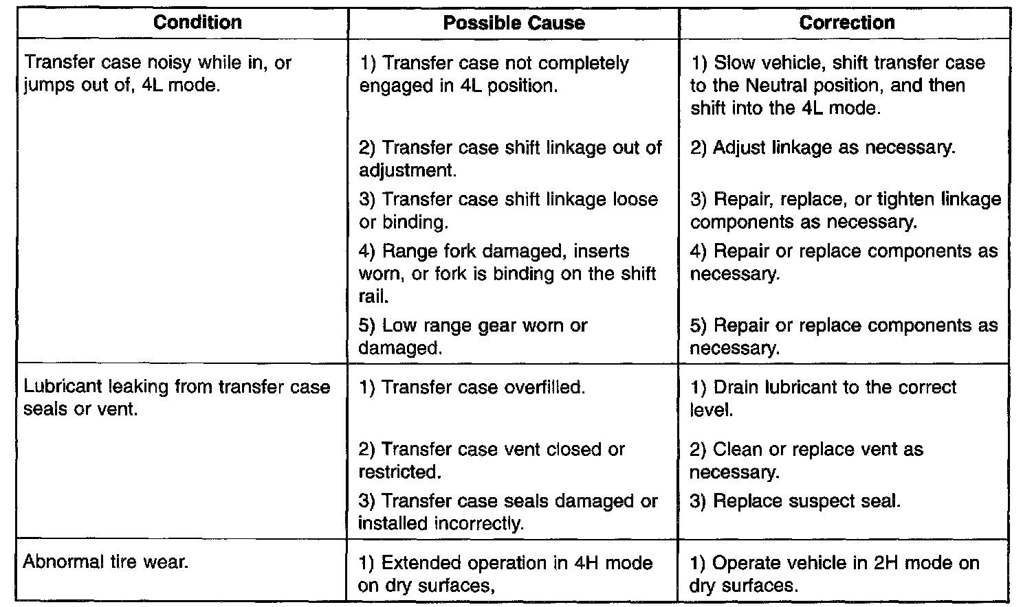 Transfer Case: Testing and Inspection