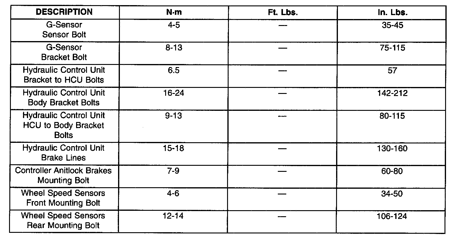 Antilock Brake System Torque Specifications