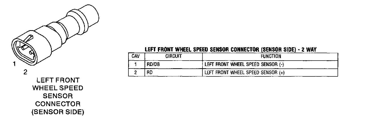 Left Front Wheel Speed Sensor Connector (Sensor Side)