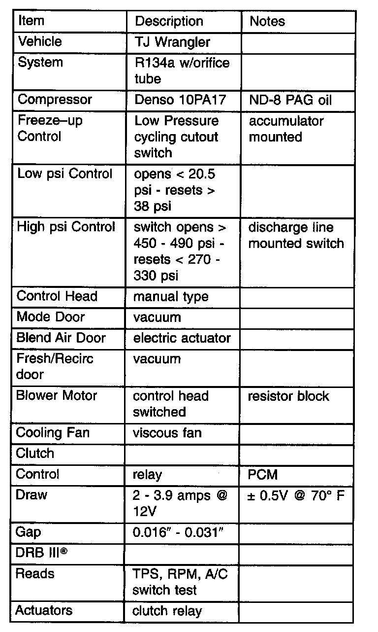 A/C Application Table: