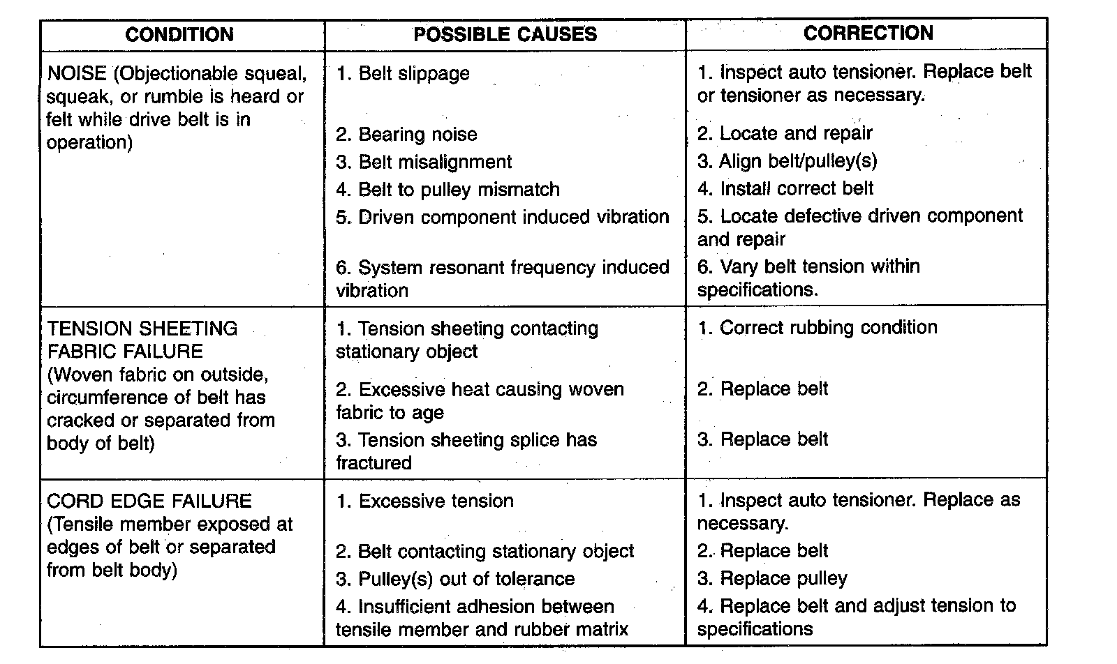 ACCESSORY DRIVE BELT DIAGNOSIS CHART